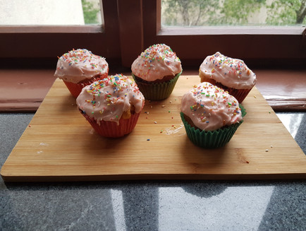 Now you can be creative! You can add whatever ingredient(s) you want, give it a good stir et voilà the muffin dough is ready to get into the oven for about 10-20 minutes at 180 °C.